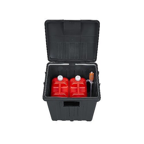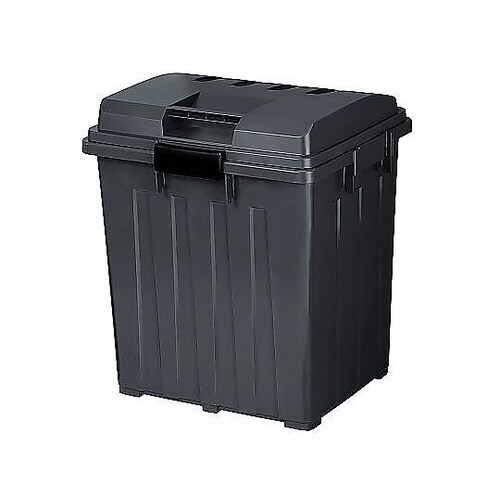 丈夫な形状で屋外に適したゴミ箱です。同シリーズの別サイズも連結可能で分別に便利です。ふたはロック可能で、カラスなどのイタズラや強風からも守ります。収納としても便利に使えます。 |