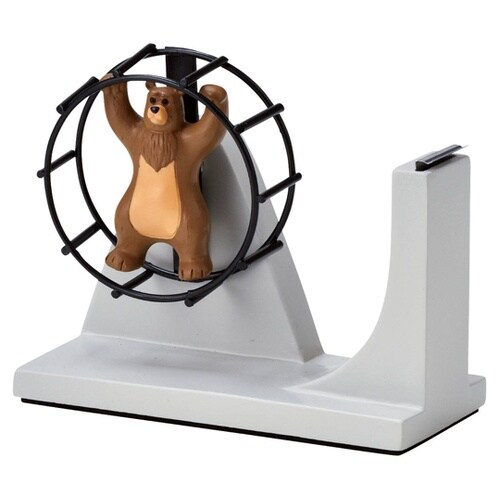 今にも動き出しそうなリアルな動物のテープディスペンサーです。力強い動物が回し車を回しているように、テープを出すお手伝いをしてくれます。 |