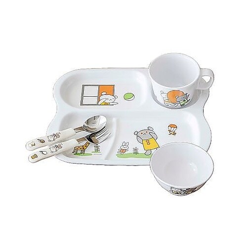 割れにくくて長持ちランチプレートセットです。飯茶碗、ランチプレート、柄付きコップ、フォーク、スプーンの5点セットです。ごはん、メイン、おかず、飲み物まで、これひとつで必要な食器が揃うランチセットです。 |