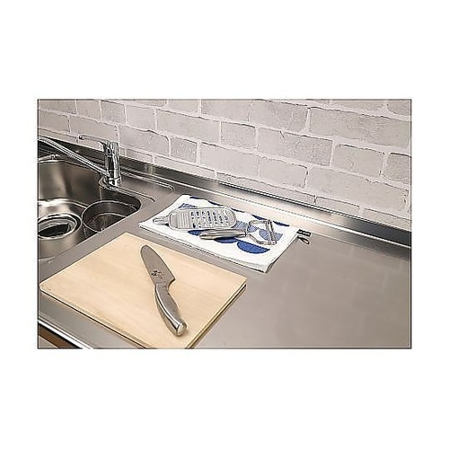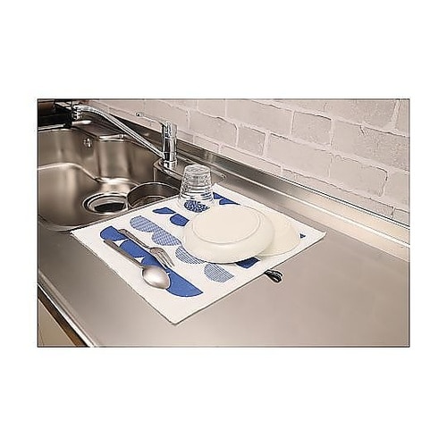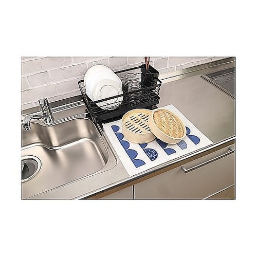 吸水速乾の2層構造で、食器がしっかり乾く乾燥マットMサイズです。鍋や水筒など、水切りカゴに入りきらない大物もしっかり乾かせます。調理中の一時置きにも便利です。 |