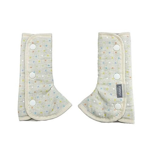 L字なので抱っこ紐の角をカバーできます。表地は肌に優しいダブルガーゼ、裏地は撥水性のあるナイロンを使用しています。安心して使える日本製です。 |