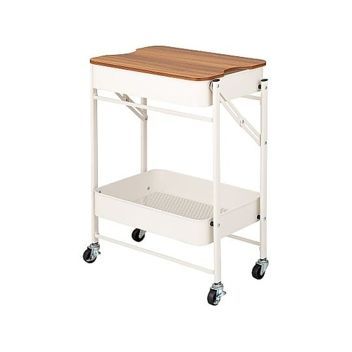 キッチンワゴン 折り畳める 2段 ワゴン Amely 天板 キャスター付き ホワイト