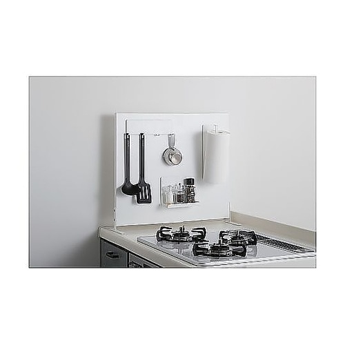 「マグネフィット」シリーズのキッチンパネルです。同シリーズのマグネット収納を貼りつければ、よく使うキッチン周りの小物を浮かせてスッキリ収納できます。 |