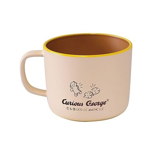 おさるのジョージのお子様用マグカップです。軽くて扱いやすく、割れにくい樹脂製食器です。安心して使える抗菌仕様です。毎日のごはんタイムをジョージといっしょに楽しく過ごせます。 |