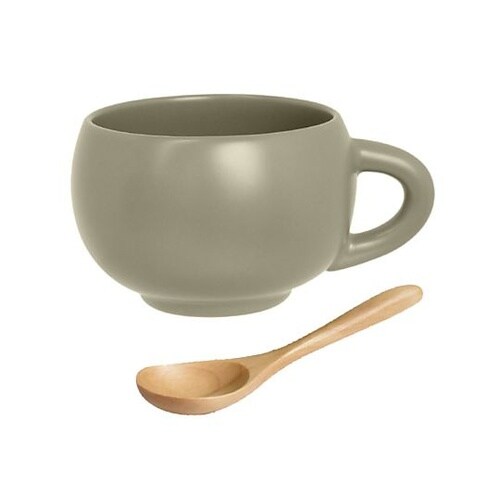 スープカップ スプーン付き 300mL maru 陶磁器 スモークベージュ 46055