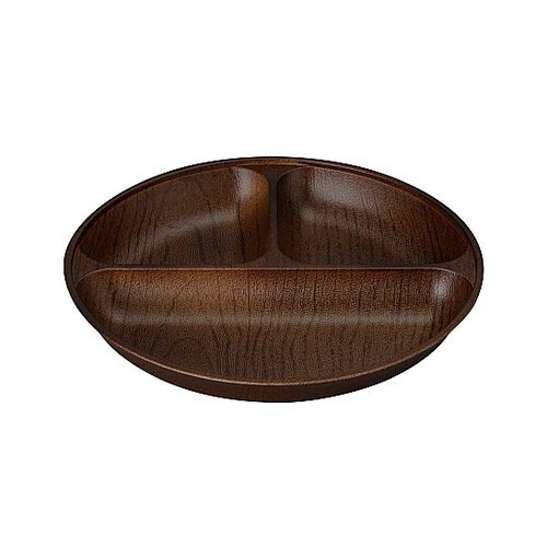 温かみのある木の風合いが感じられる木目調の丸ランチプレートです。樹脂製なので、落としても割れにくく、軽量で扱いやすいです。 |