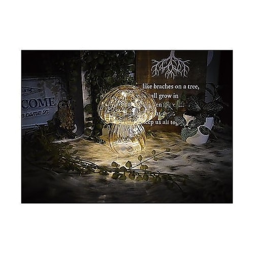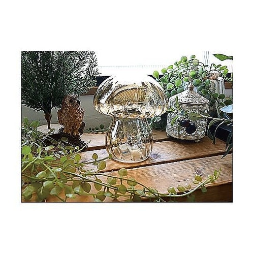 暗闇で幻想的に光る、ガラス製のキノコ型ライトです。ころんとしたカタチが可愛らしく、インテリアとして存在感を放ちます。電池式なのでコンセントの位置を気にせず使えます。 |