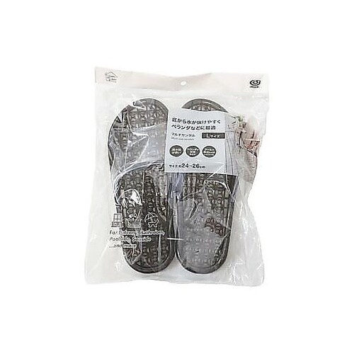 底から水が抜けやすくベランダなどに適したサンダルです。適応サイズは約24ー26cmです。底に穴が空いているので水が抜けやすく、通気性が良く足元快適です。ご家庭のベランダや浴室、お庭などにピッタリです。 |