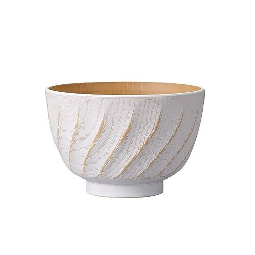 和を感じるやさしいカラーと独特なフォルムがおしゃれな汁椀です。樹脂製なので、軽くて扱いやすいです。表面は手作業で施された繊細な彫刻模様が特徴的で、手に取ったときに滑りにくく持ちやすいです。 |