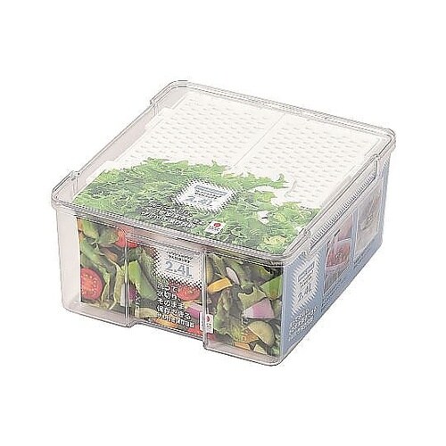 食材を洗って水切り、そのまま保存できる、ザル付き保存容器です。容量2.4Lで、たっぷり入る大きめサイズです。底に溜まる水滴が食材に付きにくいので、鮮度を保ちやすいです。 |
