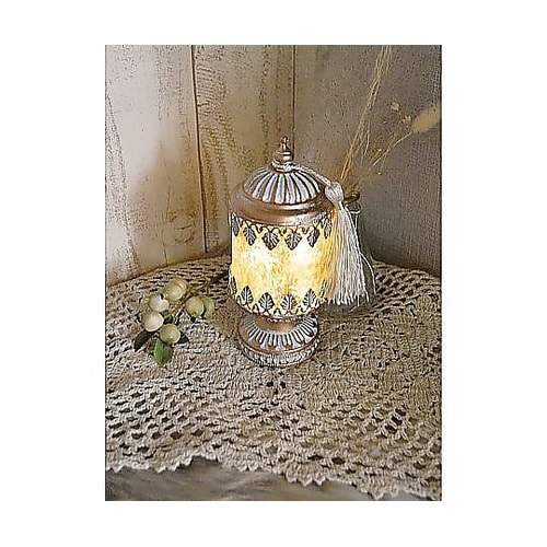 小さなサイズでも存在感のある、アンティーク調のLEDインテリアライトです。クラシカルなデザインで、置くだけでお部屋に優雅な雰囲気をプラスします。LED内蔵で電池式のため、手軽に使えます。 |