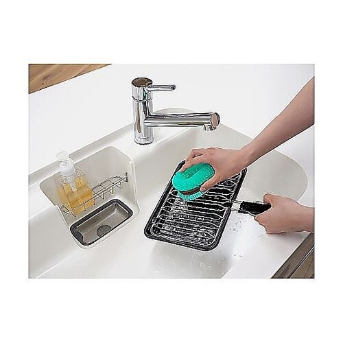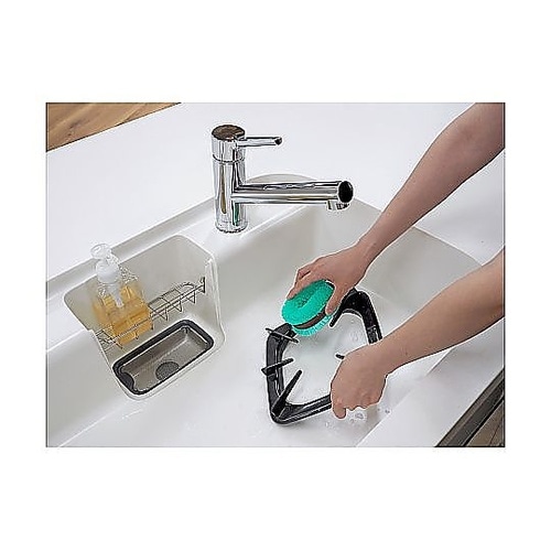 水に浮くのでため洗いの時に、たわしを捜す手間がいりません。ポリプロピレン繊維を使用しており、水切れが良く衛生的です。型崩れしにくく持ちやすいベルト付きです。 |