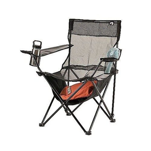 暑い日も快適なメッシュ素材のリラックスラウンジチェアです。ダブルドリンクホルダーで、片方に飲み物、片方にハンディファンなどが入れられます。座面下には棚モック付きで、バッグやちょっとした荷物が置けます。 |