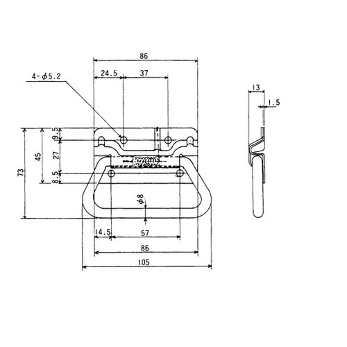 可動取手です。バネ付きのため、振動などでハンドルがガタつきません。耐久性と耐食性に優れたステンレス製です。※本商品は1セット(2ヶ)単位での販売です。 |