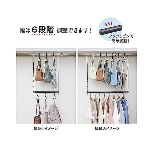 ハンガー クローゼット吊り下げ鞄ハンガー 伸縮 鞄収納 幅49ー79×奥行6.5×高さ74.5cm CH−KH