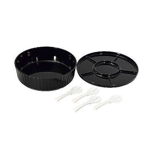 ご家庭で手巻き寿司やちらし寿司を楽しむのに便利な5点セット(寿司桶・仕切りプレート・しゃもじ4本)です。5合のご飯や具を混ぜ合わせるのにちょうど良い大きさです。プラスチック製なのでお手入れも簡単です。 |
