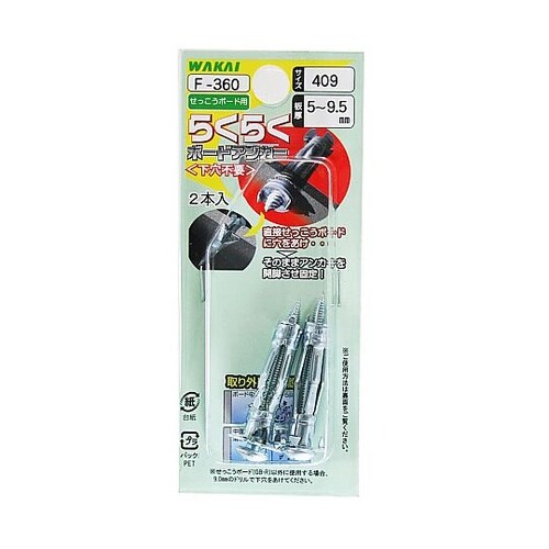 石こうボード用 らくらくボードアンカー 下穴不要 1セット(2本入) F−360
