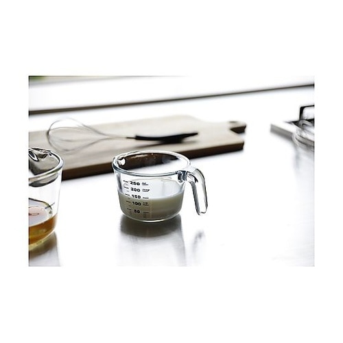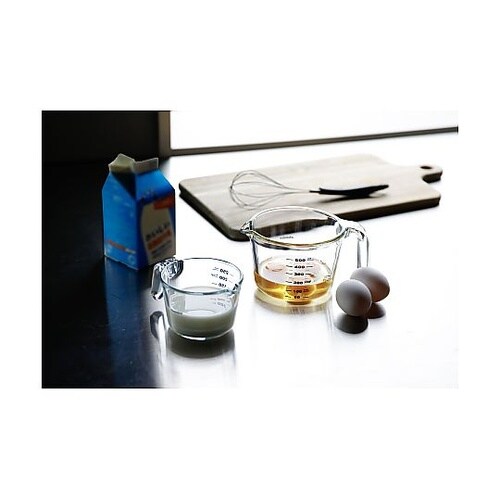 シンプルなメモリで計りやすい耐熱ガラス製の計量カップです。電子レンジ・オーブンOKで、時短調理に大活躍します。菜箸や小さな泡だて器などで混ぜやすい広口設計です。 |