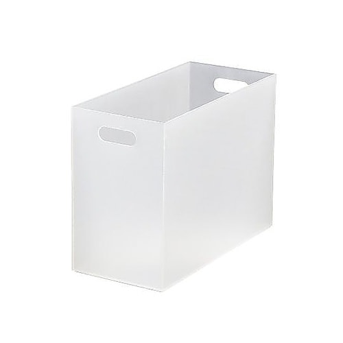 幅15cmのワイドタイプのストレーショナリーボックスです。A4サイズの書類やファイルをスマートに収納できます。立てて収納することで、ひと目で見つかりサッと取り出せます。 |
