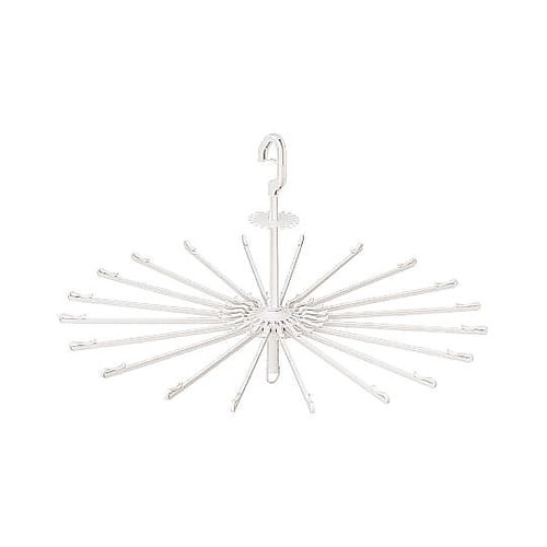 たくさん干せる20本掛けの大型サイズのパラソルハンガーです。物干し竿にフックをひっかけるだけで、ストッパーがスライドして竿をしっかり挟み、固定できます。 |