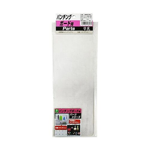 Pボード用フック(中)の上にセットし、棚板として使います。パンチングボードに取り付けて、ツールやアクセサリー、身の周りのグッズなどをお部屋の装飾もかねて収納します。 |