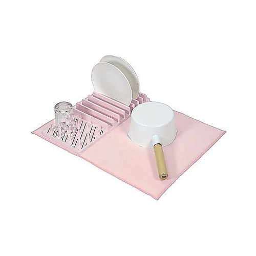 水切りトレーとマットの便利なセットです。お皿やグラスはトレーで立てて、鍋やフライパンはマットが水分を吸収して快適に水切りできます。マットは洗濯ネットに入れて洗濯機で洗えて衛生的です。 |