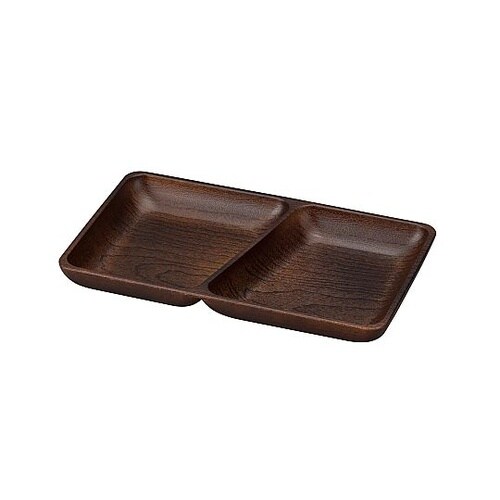 温かみのある木の風合いが感じられる木目調のスクエアプレートです。樹脂製なので、落としても割れにくく、軽量で扱いやすいです。仕切り付きなので、料理が混ざらず見栄えよく盛り付けできます。 |