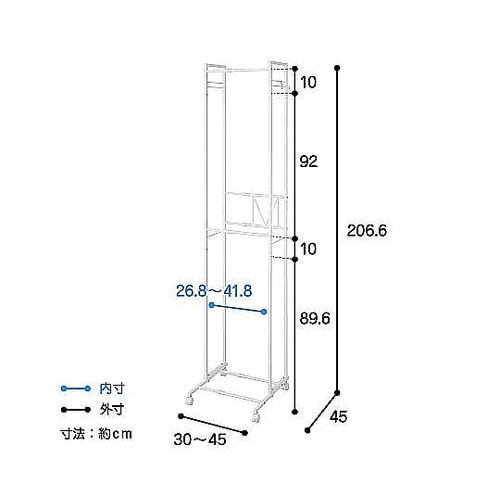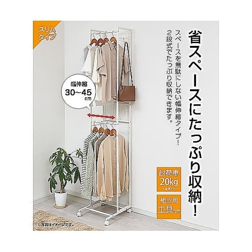 ハンガーラック 2段 スリム 伸縮タイプ キャスター付き ホワイト KP−2HS−W