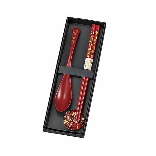 桜柄の縁起の良い箸とスプーンと箸置きのセット商品です。お箸は22.5cm、スプーンは19.5cmです。お箸は木製で手に馴染みます。スプーンは口当たり優しく和スイーツのおもてなしにピッタリです。 |