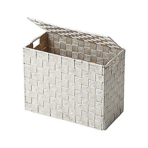 インテリアに馴染むフタ付きバスケットです。使わない時は折りたたんでコンパクトに収納できます。スリッパや掃除道具の収納に便利です。持ち運びに便利な持ち手付きです。 |