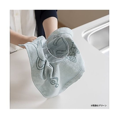 ねこ画家、おかべてつろう先生監修のふきんです。食卓やキッチンの台拭きとしてはもちろん、食器拭きにも使える万能ふきんです。Ag+(銀イオン)を繊維に練り込み済みで、洗っても抗菌効果が持続します。 |