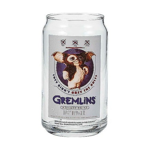 グレムリンのイラストがかわいい缶型グラスです。缶のフォルムをそのままガラスにしたデザインで、ジュースや炭酸飲料をおしゃれに楽しめます。 |