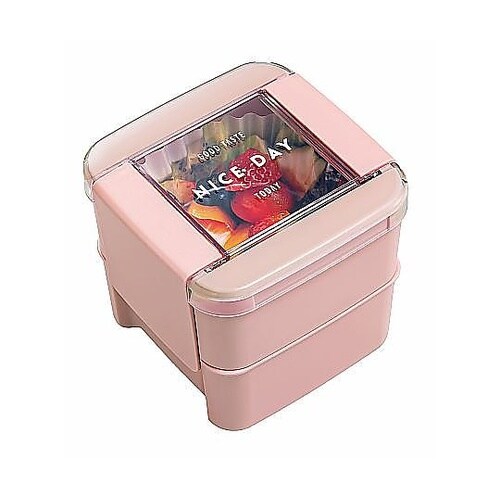 お弁当箱 イージーケアランチスクエア2段 680mL ピンク B−1490