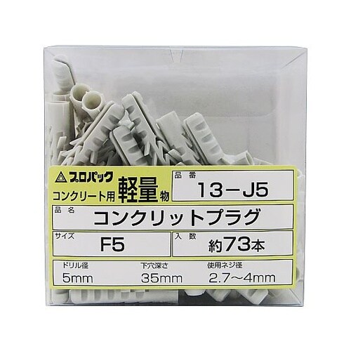 適合ドリル径(mm):5 | 穿孔深さ(mm):35 | 使用ねじ径(mm):2.7ー4.1 | 使用ねじ長さ(mm):30 | プラグ径(mm):5…