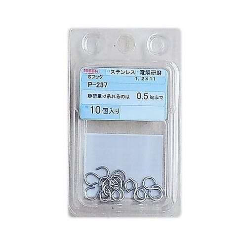 ステンレス Sフック 1セット(10個入) シルバー P−237