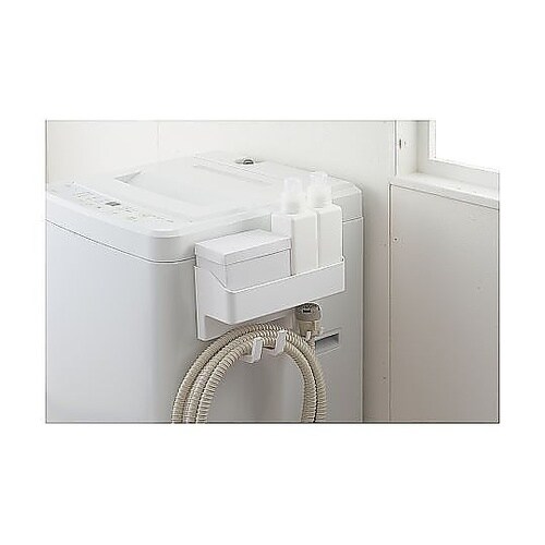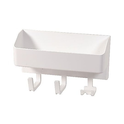 マグネットで簡単に取り付けができるフック付き収納ラックです。箱入り洗剤やボトルなどをまとめて収納できます。本体には便利なラージフック2つとダブルフック1つが付いています。 |