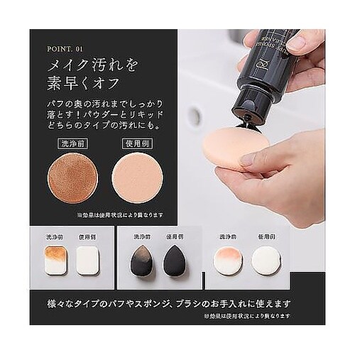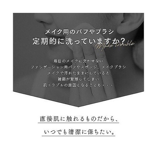 メイク道具の汚れをキレイに落とすクリーナーです。さまざまな化粧パフ・スポンジにお使いいただけます。パウダー・リキッドどちらのファンデーション汚れにも対応します。泡切れが良く短時間で洗えます。 |