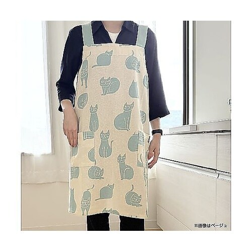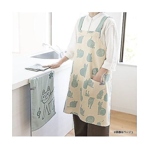 エプロン おかべてつろう ネコ 綿100% ポケット付き 洗濯機可 ベージュ