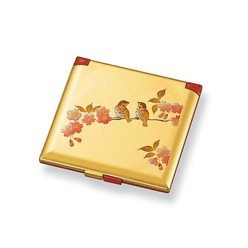 コンパクトミラー 角コンパクトミラー 箔工芸 山中塗 和風 花鳥 M14534−2