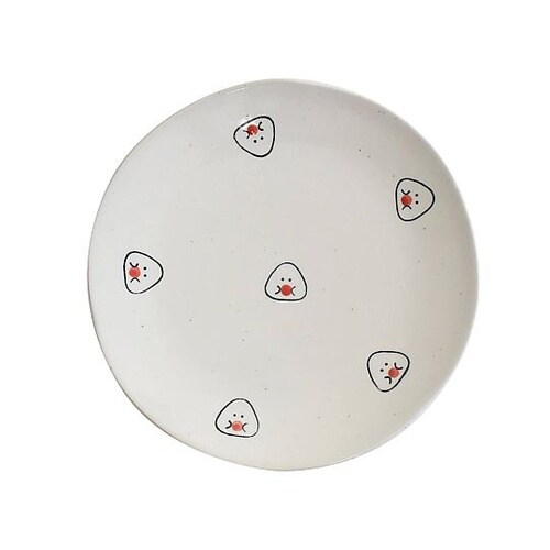 「ぎゅっとおにぎりさん」のイラストが魅力の皿です。九州の波佐見焼の器です。パスタなどのメイン料理を盛り付けるのに使ったり、2人分のおかずを盛り付けて使うのにちょうどいいサイズです。 |