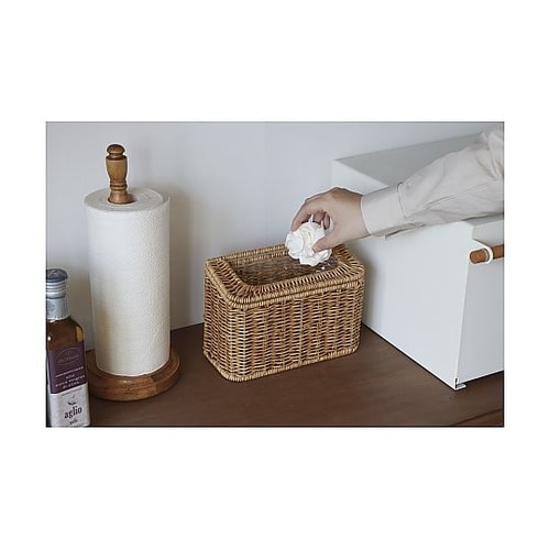 デスクやキッチンなど限られたスペースにもスッキリ収まるゴミ箱です。温かみを感じるかご編みの風合いが、お部屋に違和感なく溶け込んでくれます。ゴミ袋やマスクのストック入れ、小物収納など多用途に活躍します。 |