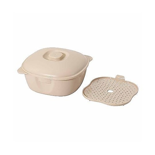 1人分のインスタントラーメン・焼きそばがレンジで簡単に作れる鍋です。材料を入れてレンジでチンするだけで簡単にお料理が作れます。蒸し皿が付いているので、同時に野菜も調理可能です。 |