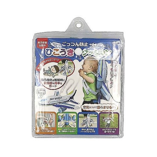 後ろ向きの転倒時に後頭部や背中を守る飛行機型のクッションです。翼が肩や背中を広くガードしてくれます。空気を抜いてコンパクトに持ち運びできます。ショルダーベルトはお子様に合わせ長さ調節していただけます。 |
