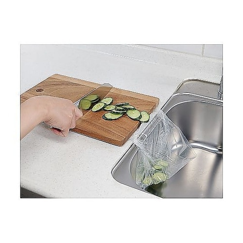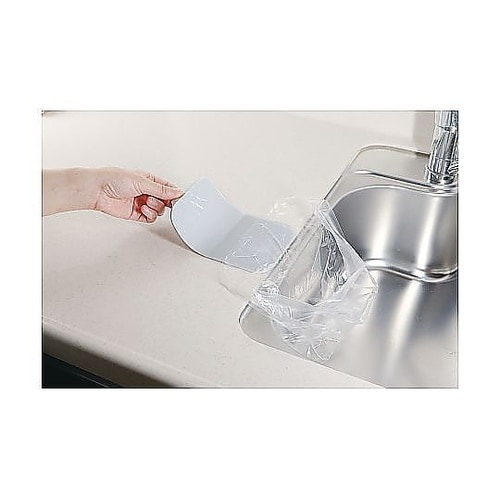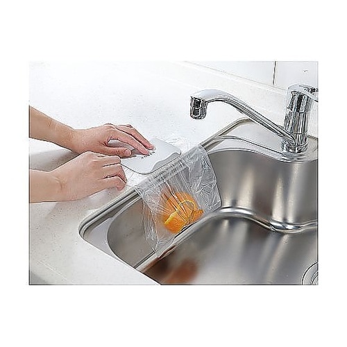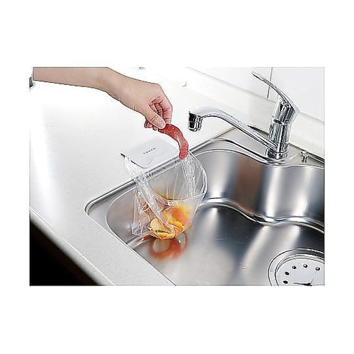 ペタッとくっつくゴミ入れです。シンクに貼り付けて、ポリ袋をはさむだけで簡単にセットできます。キッチンだけでなく、書斎やリビングても使うことができます。 |
