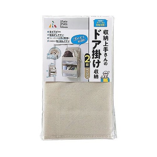 収納ポケット 壁掛け収納 2段 ドア掛け収納 PataPata フック付き ベージュ JJ−030
