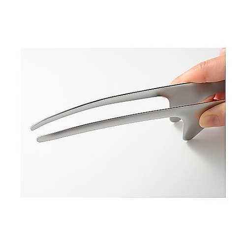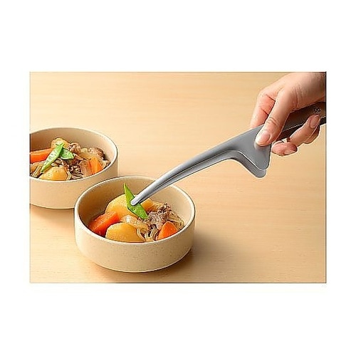 先端部は、お皿に当たらないちょうどいい高さに設計されています。テーブルにサッと置けるので、トングスタンドなどを用意する必要がなくスペースも取りません。 |