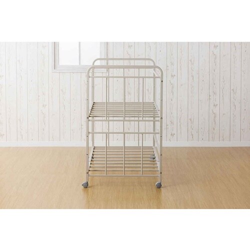 布団収納ラック2段 幅103.5奥行65.5高さ100cm キャスター付き グレージュ
