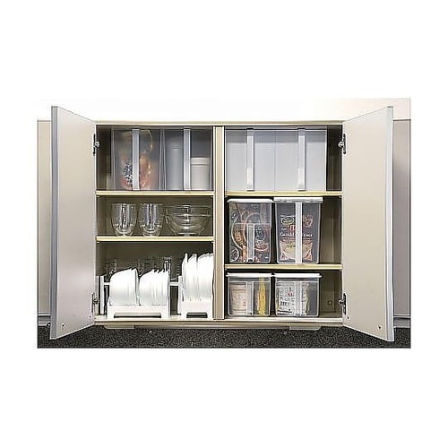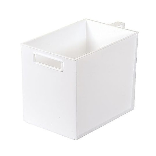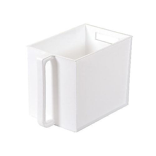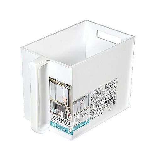 吊り戸棚や食器棚の上などで使用できる吊り戸棚ストッカーです。ハンドル付きなので吊り戸棚から取り出しやすく、持ち運びしやすいです。 |
