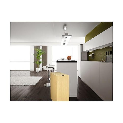 オープンキッチンやカップボードに美しくフィットします。スムーズ開閉のスライド式ふたです。棚下など高さ制限のある場所でも使いやすいです。ポリ袋を見せずにセットできる袋止め付きです。 |