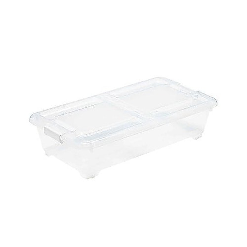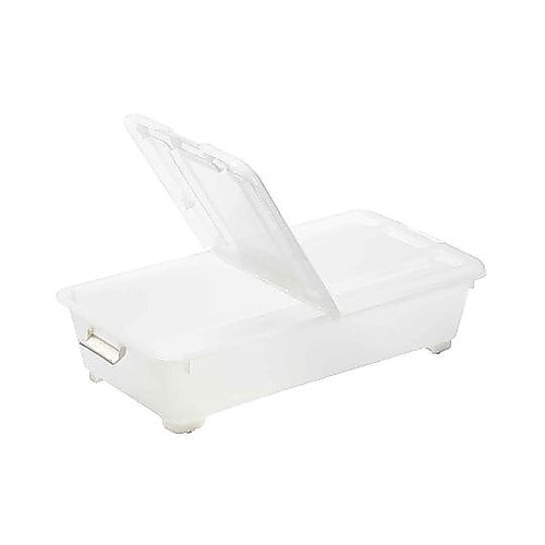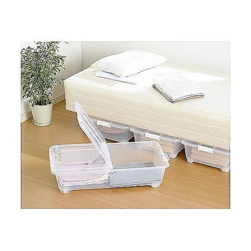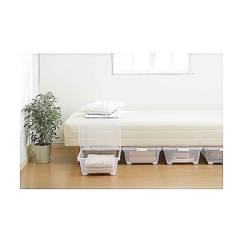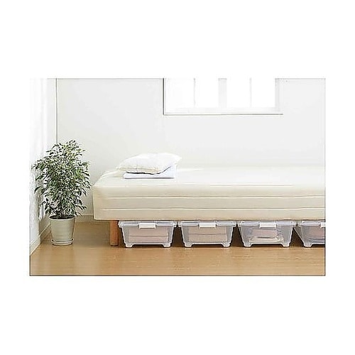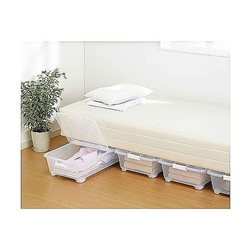 ベッド下の限られたスペースをムダなく活かす、スリム設計の収納ボックスです。高さ18cmの浅型設計で高さのないスペースにもフィットします。左右開閉式のフタで、ベッド下でも片側ずつ開けられて便利です。 |